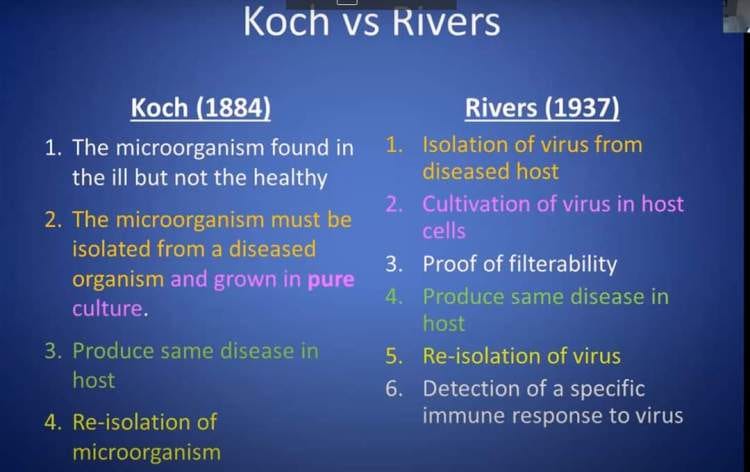 Rivers’ postulates are the accepted standard for proving viral disease causation—not Koch’s classical postulates. Period.