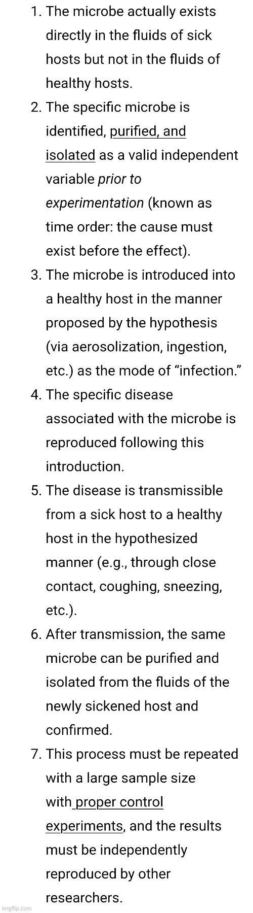 You are treating “Koch’s Postulates” like some unchanging scripture, as if scientists are bound to 19th-century lab rituals forever. In reality, it’s an evolving framework for proving causation—something every virologist understands. The studies literally spell it out: “Koch’s Postulates, as modified by Rivers.” That should have been your first clue. The phrase is literally right there: “Koch’s Postulates.”