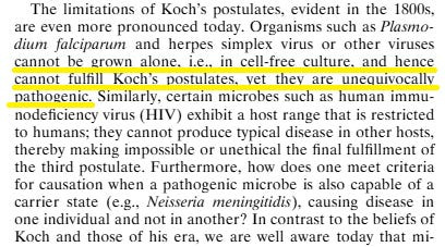 You have to pretend they mean the original postulates so you can insist on “pure culture” for viruses—something biologically impossible since viruses need host cells. This pedantic setup lets you cry “Gotcha!” and claim deception. But “pure culture” was never required for viruses; Rivers replaced it with cultivation in host cells.