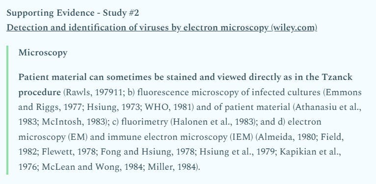 The AI cited Stanley’s “purification” of TMV, which I had already addressed in my article, showing that it was not a purified or isolated “viral” preparation. It also claimed that TMV had been visualized by electron microscopy in the 1930s–40s, which I had likewise refuted in the same article. Ironically, in listing six supposed steps completing the chain of evidence I requested, it provided citations for only five. The missing one—Step 3, “infectivity from purified prep” and re-isolation of identical particles from newly diseased hosts—was conspicuously unsupported: